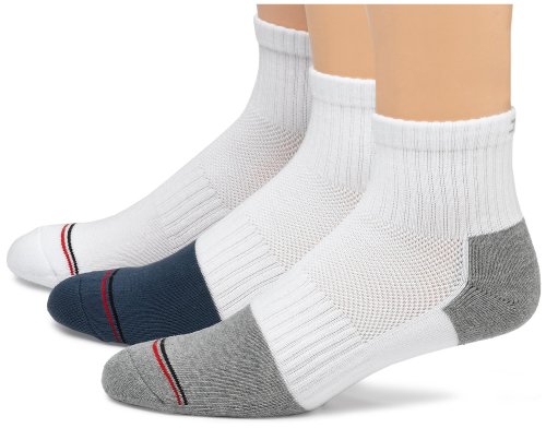IZOD Men's Performx Quarter Top Moisture Management Active Sock, 3-Pack, White/Grey/Blue, Size 10-13 Reviews